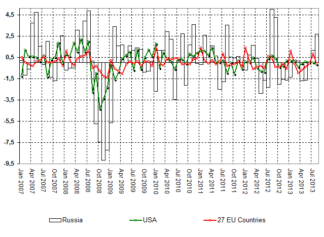 data source: Federal State Statistic Service of Russian Federation, EuroStat, Bureau of Labor Statistic USA