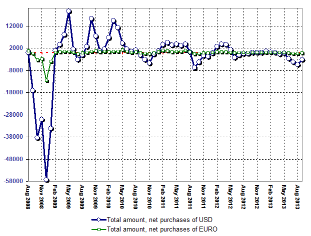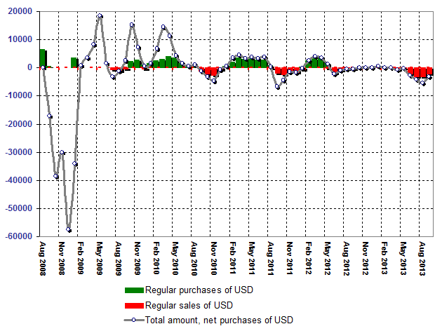 Bank of Russia publishes information about Its operations on foreign exchange market since August, 2008.