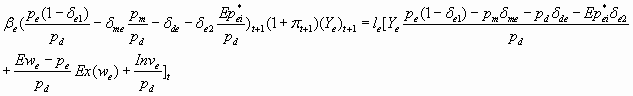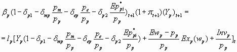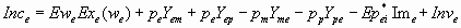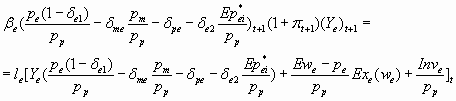 После этого записывается уравнение для агрегированного дохода в новом частном секторе: этот доход складывается, соответственно, из доходов от экспорта, доходов от поставок продукции для населения и “старого” сектора за вычетом затрат на закупки продукции “старого” сектора, затрат на импортные поставки, плюс суммарный объем инвестиций в новый частный сектор:
