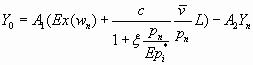 С другой стороны, реальный выпуск экспортно-ориентированного сектора связан с объемом ресурсов труда и капитала моделью производственной функции: