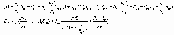Затем выписываются уравнения для производственной функции и заработной платы в секторе ЕМ: